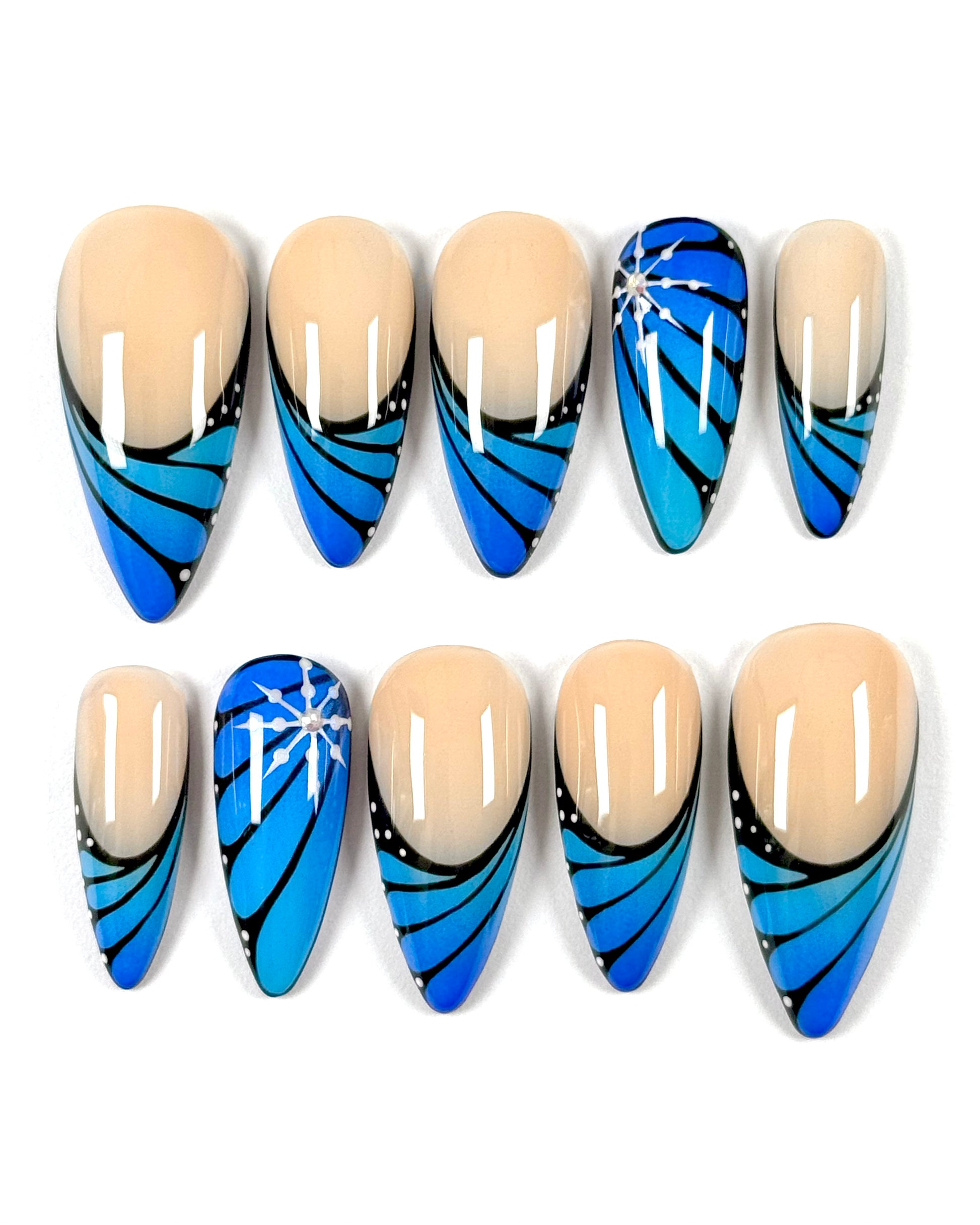 Dégradés de bleu profonds, ailes de papillon finement dessinées et un flocon de neige délicat : un design pensé pour incarner toute la force et la fragilité de Cassie et Ace 🦋❄️