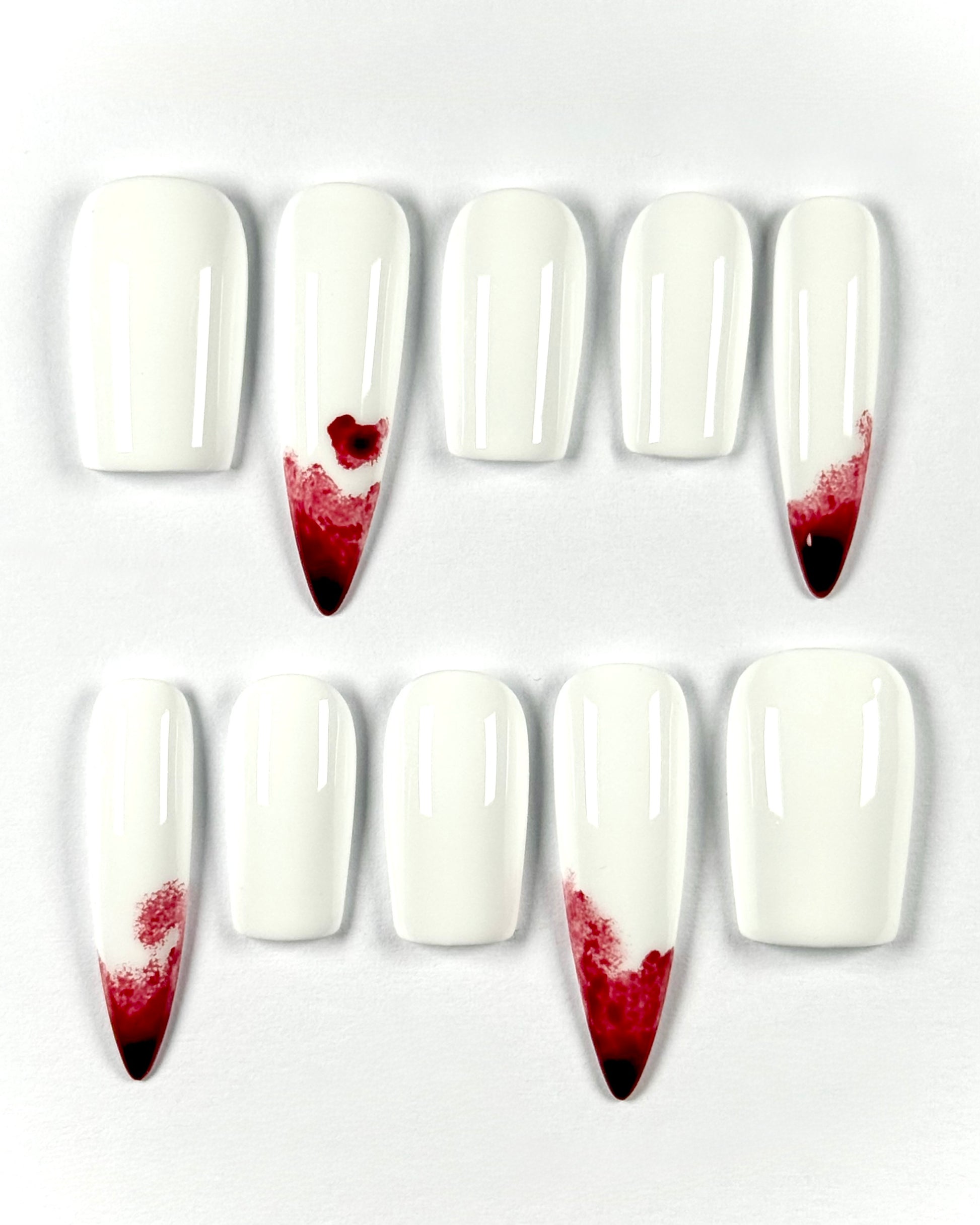 Avec leur base blanche Ă©clatante et leurs pointes rouges façon morsures, ils rappellent les crocs acĂ©rĂ©s dâun vampire.