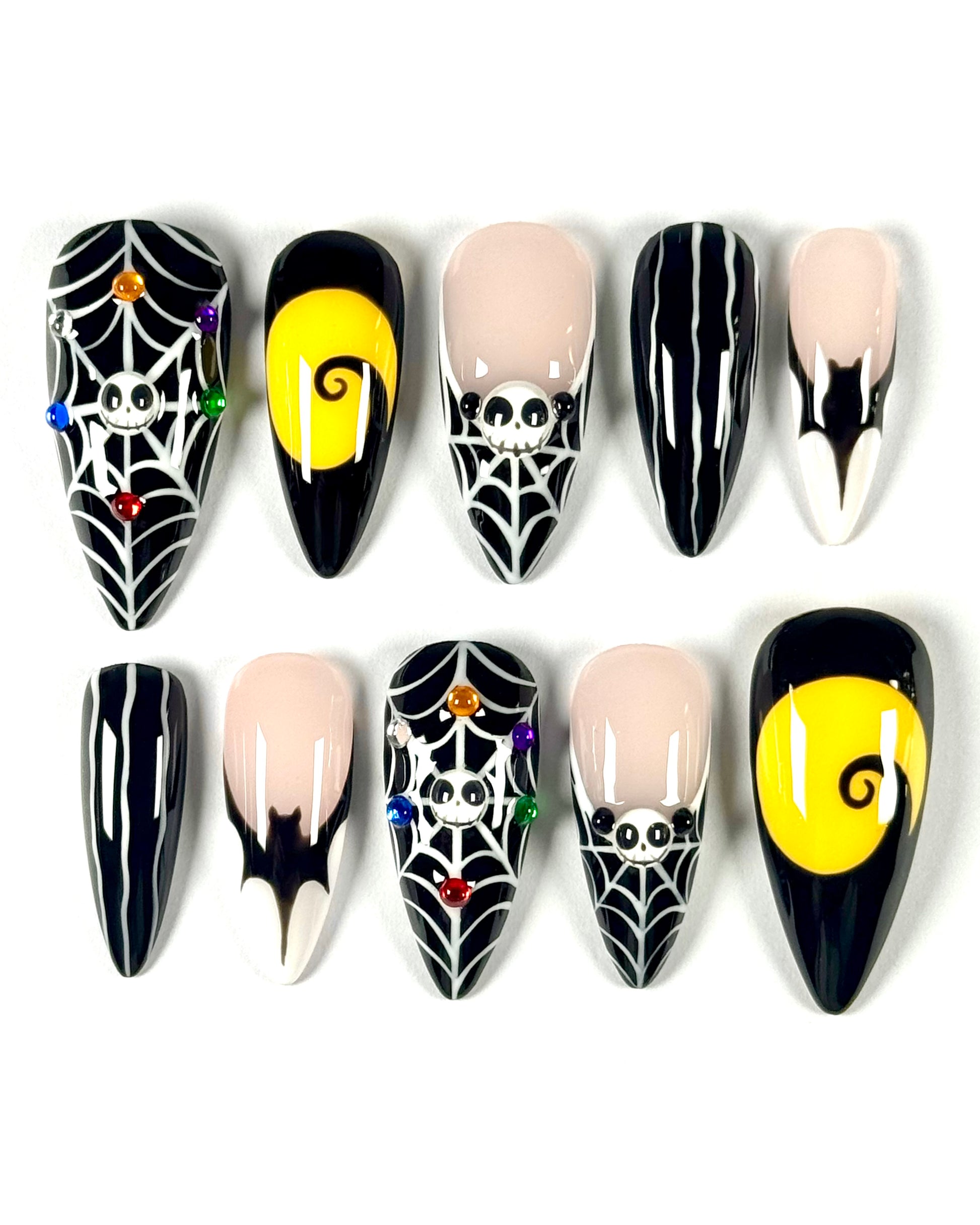 Entre toiles d’araignée, pleine lune dorée et costume rayé emblématique, chaque détail rend hommage à Jack Skellington 💀